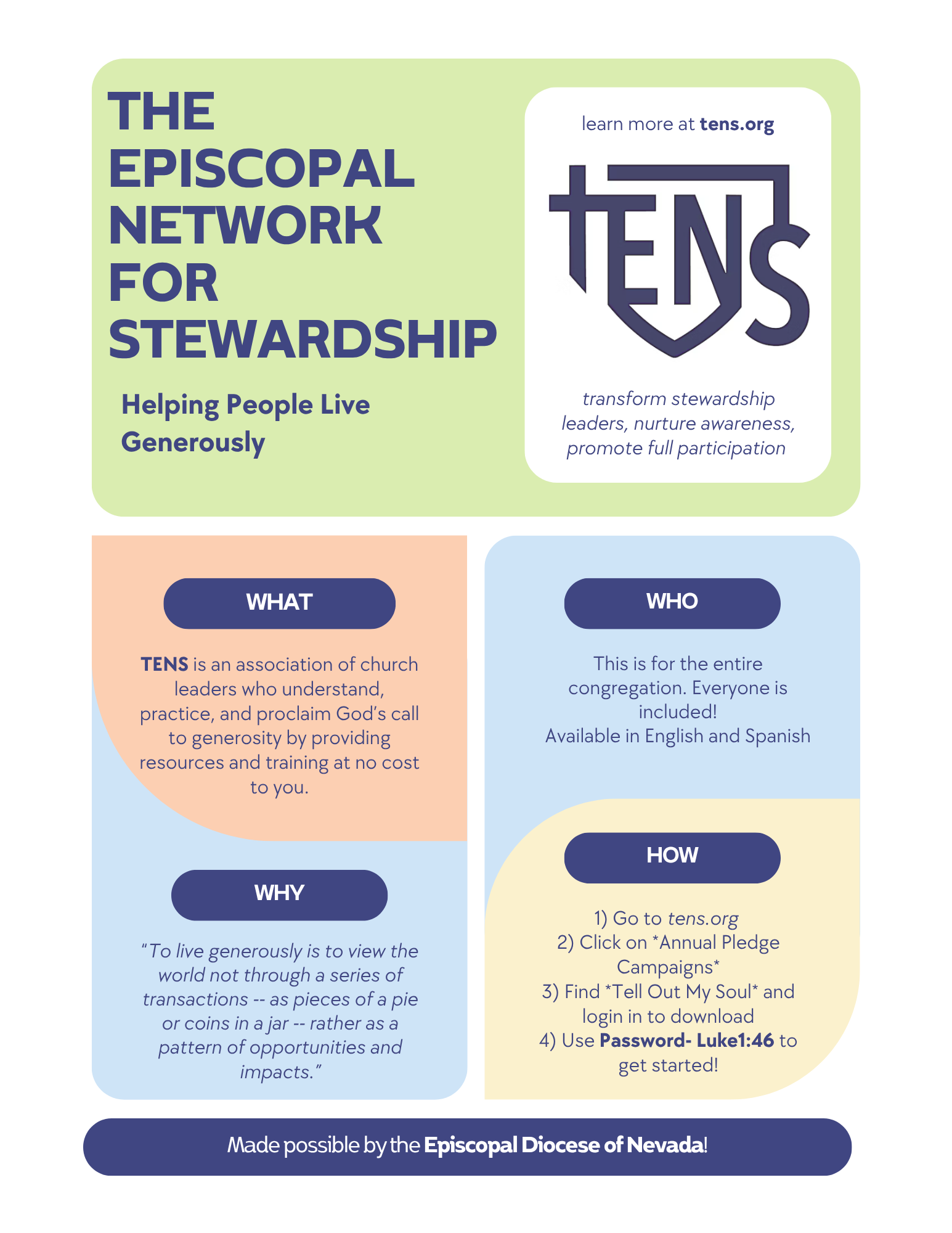 Please use these flyers as an introduction to some programs that are available for congregations in the Diocese of Nevada!