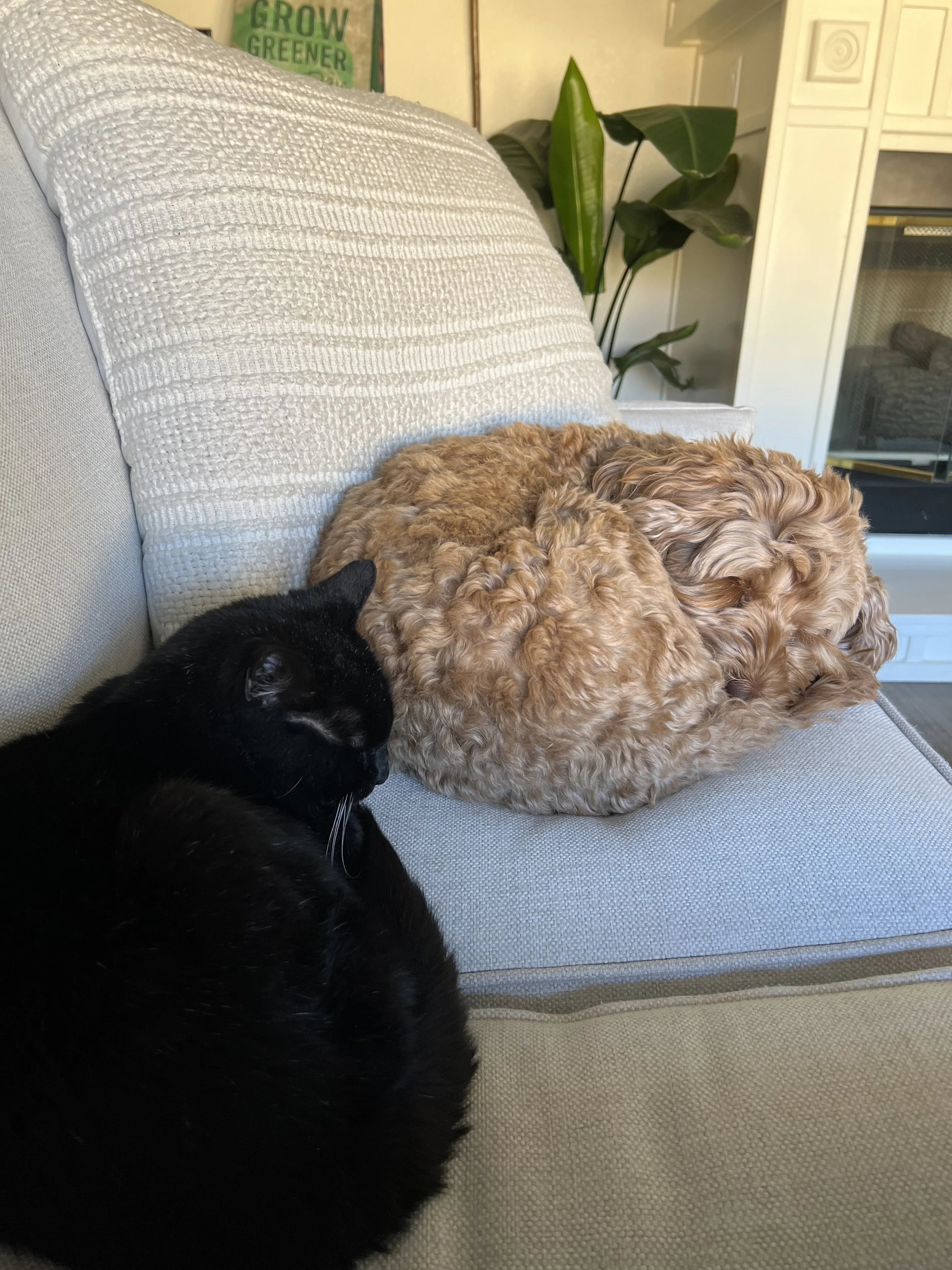 Chris and Elizabeth live in Reno with their Covid puppy, (Naughty) Dottie and Deacon Nancy Janess’s kitty, Velvet. She is definitely part of the family now.